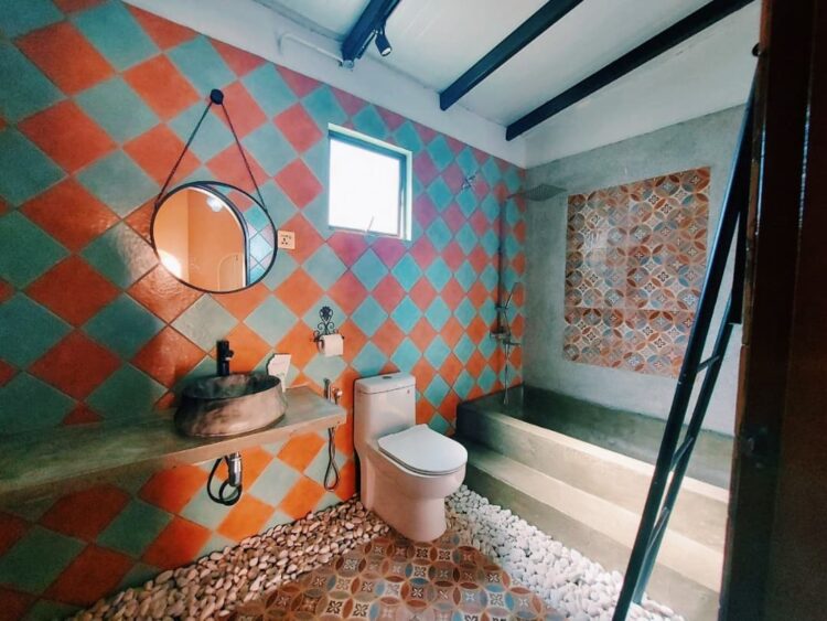 Jubin berwarna warni melatari ruangan bilik mandi ini