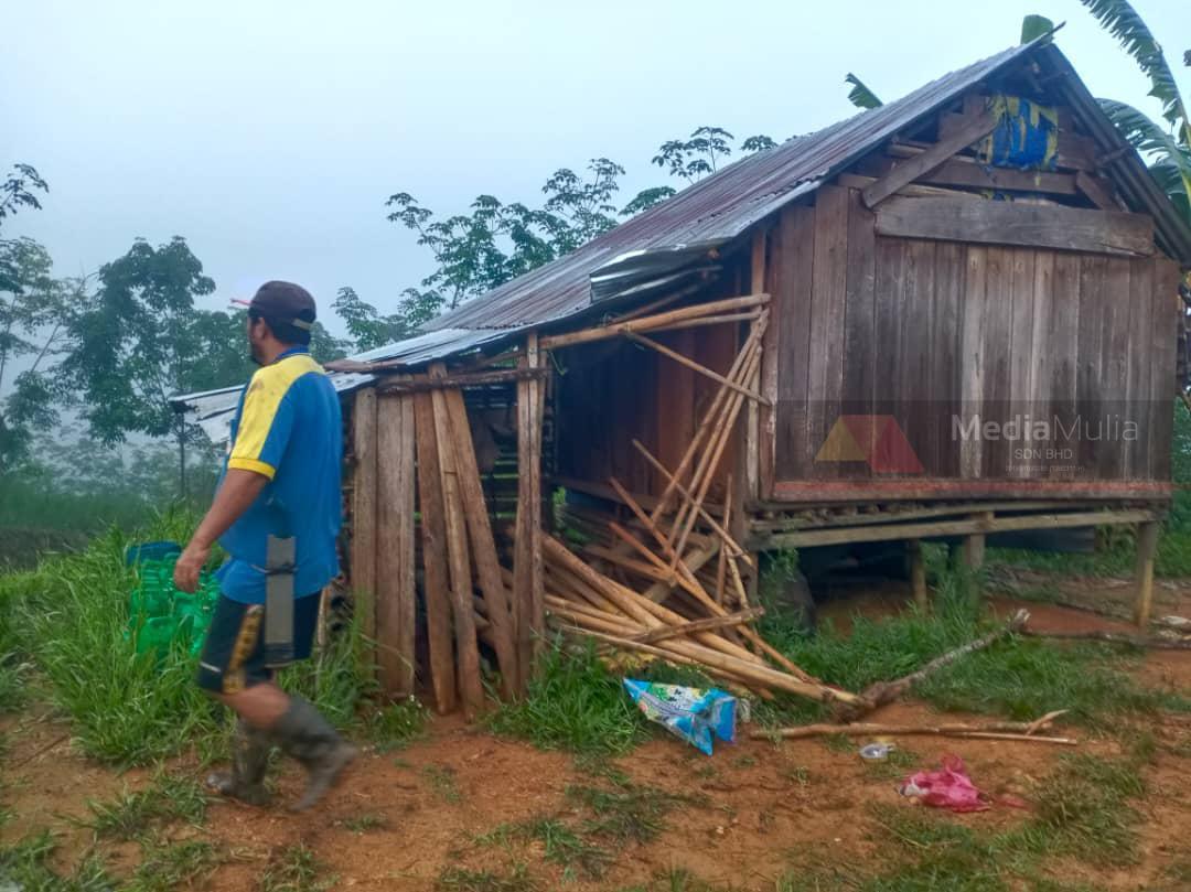 Selain tanaman, gajah liar turut memusnahkan rumah diperbuat daripada buluh di Gua Musang baru-baru ini.