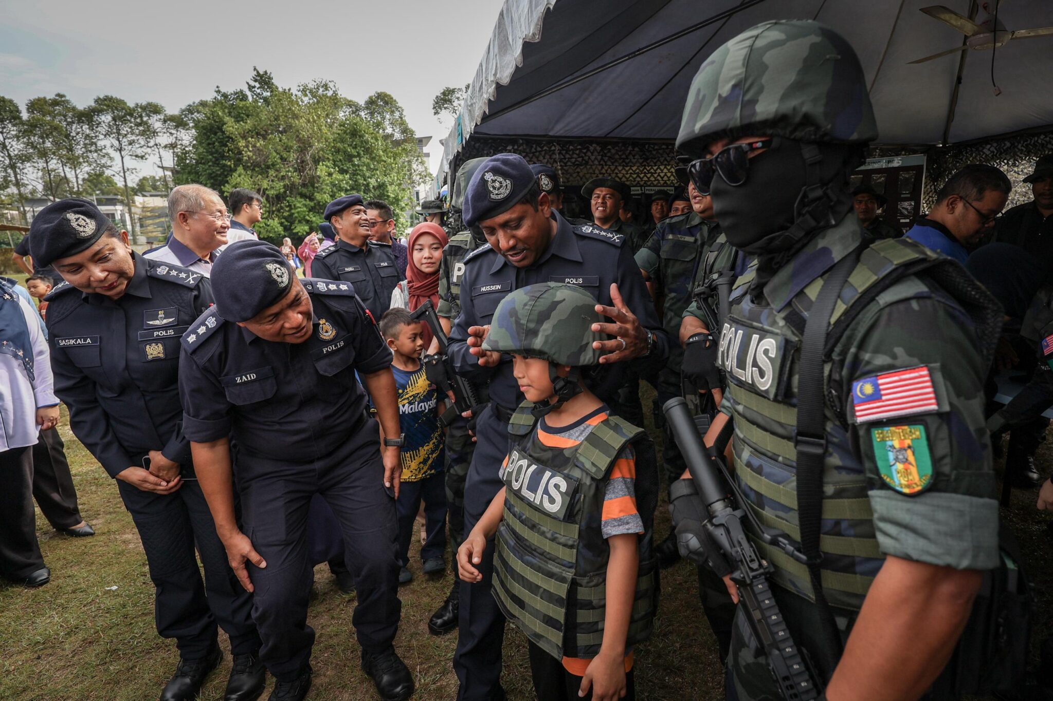 Hussein beramah mesra dengan penduduk yang hadir ketika Majlis Pelancaran Taman Angkat Amanita PDRM Kontinjen Selangor 2024 hari ini. Foto oleh IQBAL ROSLI /KOSMO!