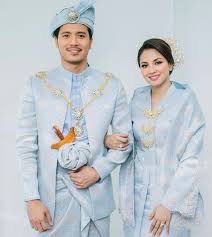 Lelaki - memakai 3-piece-suit, vest berwarna hitam dan kot berwarna putih krim macam pengantin perempuan. Memakai tali leher hitam.