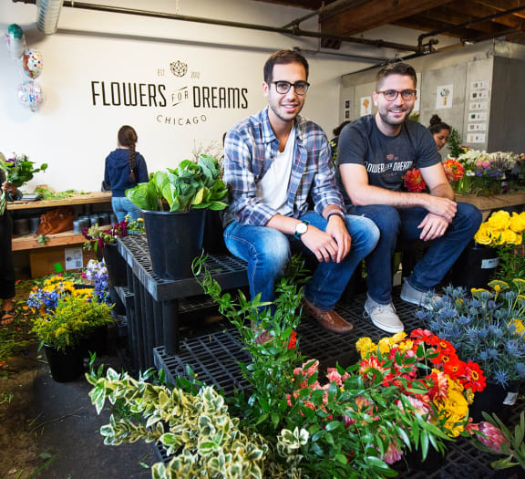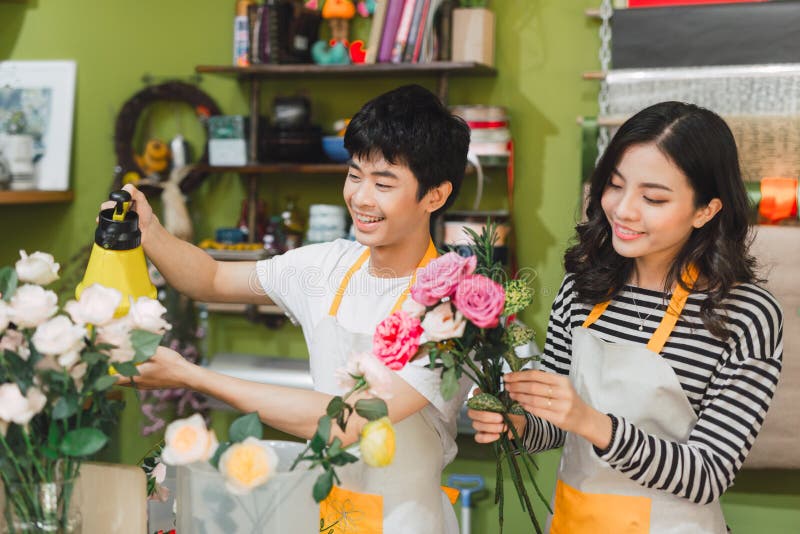 Lelaki pertama tengah pegang spray air warna kuning. Pakai baju kemeja lengan panjang (dilipat sampai ke siku) warna putih cream dan seluar warna kelabu gelap.