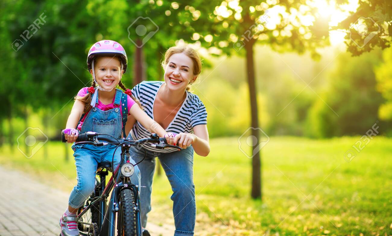 Cari gambar ibu mengajar anak perempuannya berbasikal
