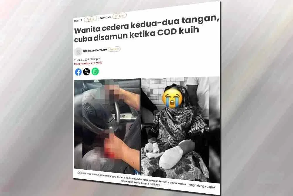 Laporan Sinar Harian pada Isnin lalu mengenai seorang peniaga makanan cedera kedua-dua tangan selepas cuba disamun ketika COD kuih.