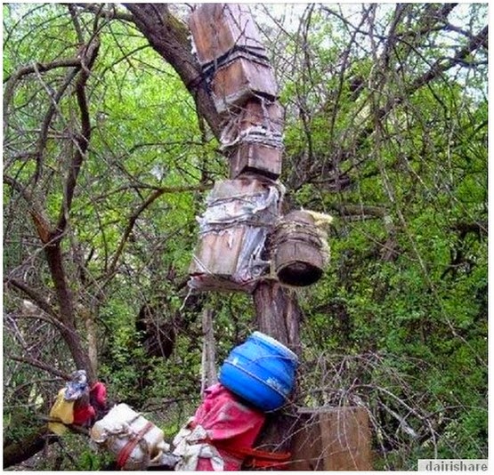 Perkuburan atas pokok pasti akan kedengan pelik tetapi di daerah Nyingchi dan Kangbei, Tibet, bagi kanak-kanak yang berumur 13 kebawah mereka akan dikuburkan di atas pokok. Bayi yang baru meninggal dunia dimandikan menggunakan air bergaram sebelum diletakkan di dalam keranda dan kemudian digantung pada pokok.