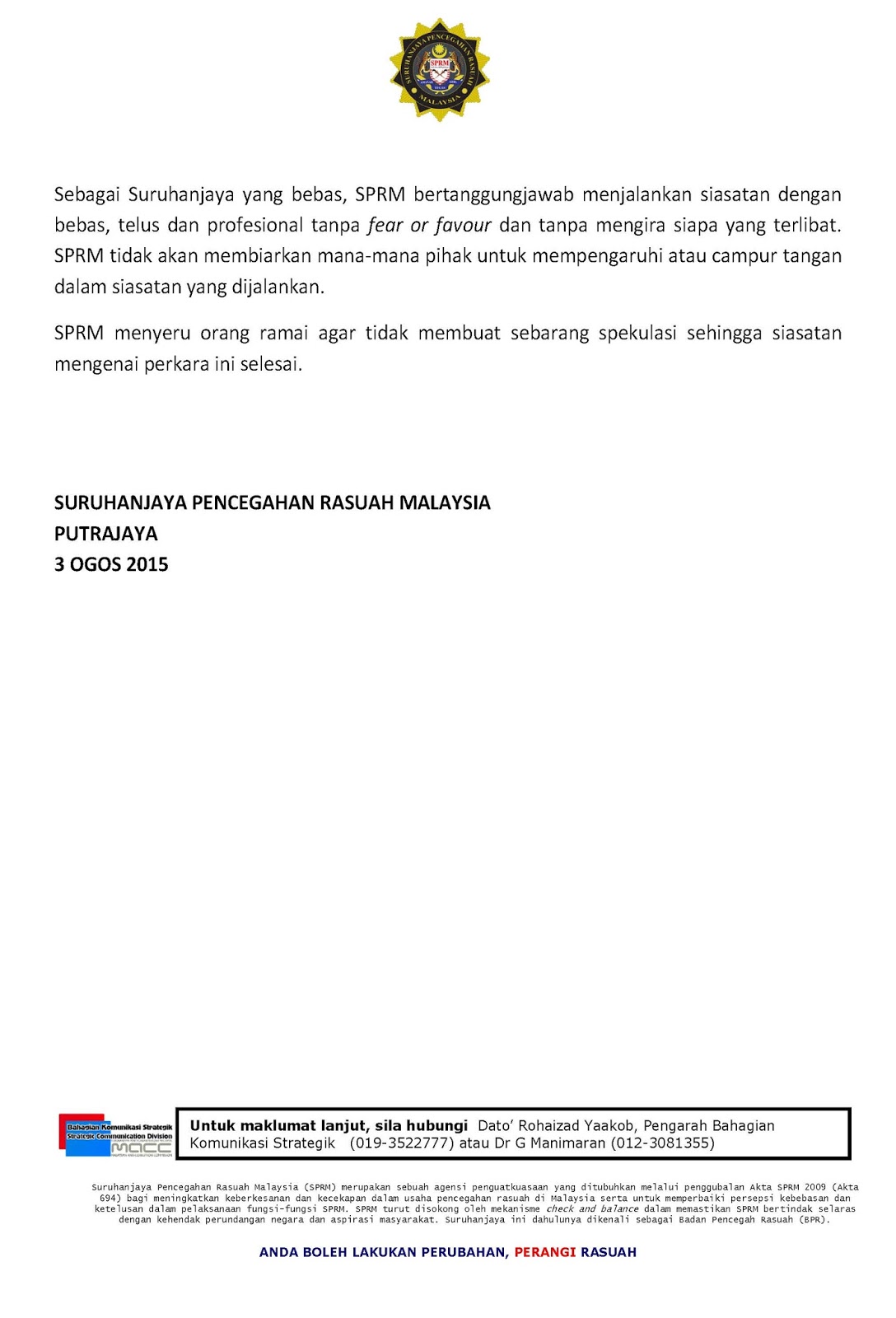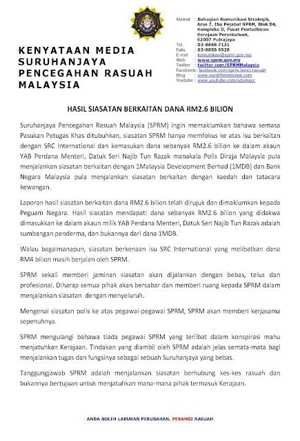 Bila SPRM keluarkan kenyataan nie siap la jadi bahan hencapan rakyat malaysia & org gomen... |