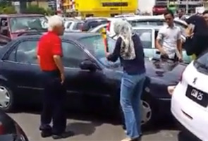 Nasib bukan dengan i, coz sure lebih gamat bila pompuan saling bertumbuk tengah jalan. She very lucky kena uncle Sim...otherwise dah kena lepuk pompuan ni.. |