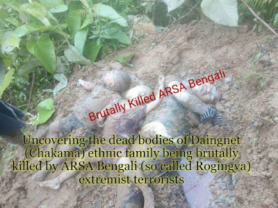 On the 15th of September the dead bodies of a family were discovered by Burmese security forces In Mayu Mountain Rakhine state. The family are believed to be Daingnet minorities. The murders have been blamed on the Arakanese Rohingya Salvation Army (ARSA, formerly Harakah al Yakin) a terrorist group with links to Saudi Arabia and Pakistan.
