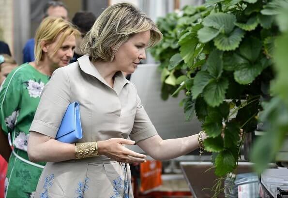 On June 13, Queen Mathilde visited two farms in Heers and Lummen of the Limburg province. During the visits, the Queen met the female farmers. In Heers, The Queen firstly visited a farm that breeds cattle, grows crops and strawberries and focuses on green care. In Lummen, she visited a farm that grows kiwi berries and strawberries.