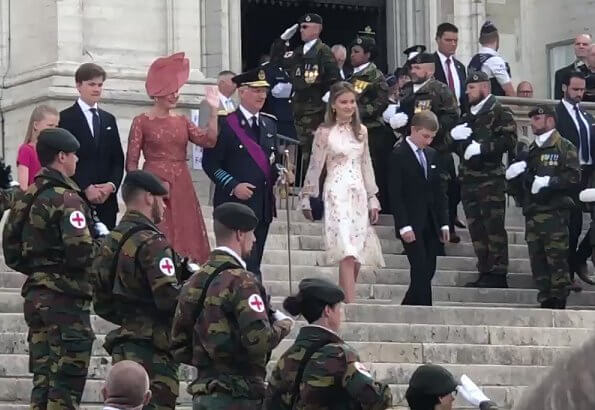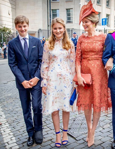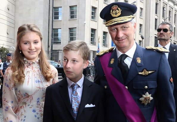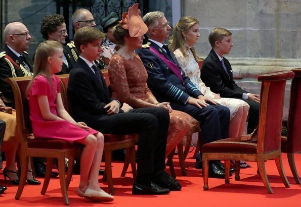 On July 21, 2019, King Philippe, Queen Mathilde, Crown Princess Elisabeth, Princess Eleonore, Prince Gabriel and Prince Emmanuel of Belgium attended the "Te Deum Mass" at the Cathedral of Saint Michael and Saint Gudula in Brussels on the occasion of the Belgian National Day.