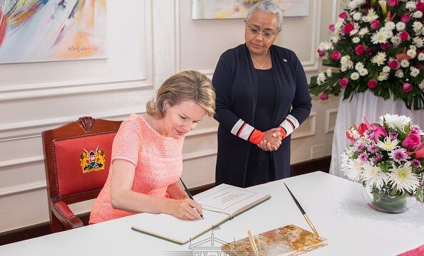 Queen Mathilde met with First Lady Margaret Kenyatta at State House in Nairobi.