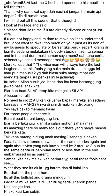 Dah kenapa pulak nak suspicious kat ex-wife dia..dia kena tipu & tinggal macam tu, sapa tak marah..ni time utk dia vent out semua kemarahan & kesedihan dia.. |