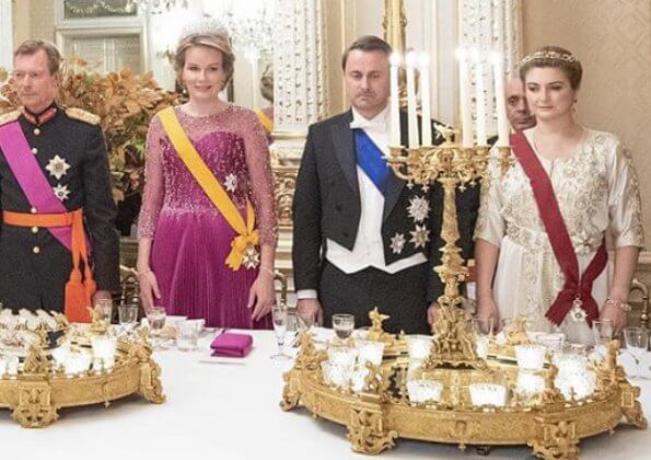On the evening of October 15, 2019, Grand Duke Henri and Grand Duchess Maria Teresa held a dinner at Grand Ducal Palace in honour of King Philippe and Queen Mathilde of Belgium.