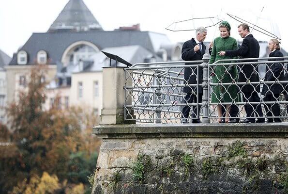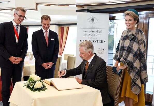 On October 15, King Philippe and Queen Mathilde were welcomed by the Grand Duke of Luxembourg with a state ceremony held at the Grand Ducal Palace. Then, the King and the Queen went on a sightseeing tour with Marc Angel, President of Luxembourg City Tourist Office. Afterwards, the King and the Queen were received by Mayor of Luxembourg, Lydie Polfer at the municipality building.
