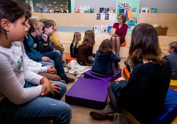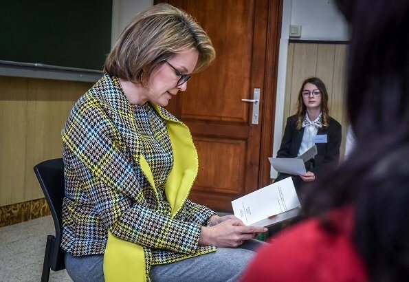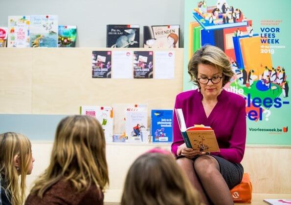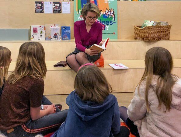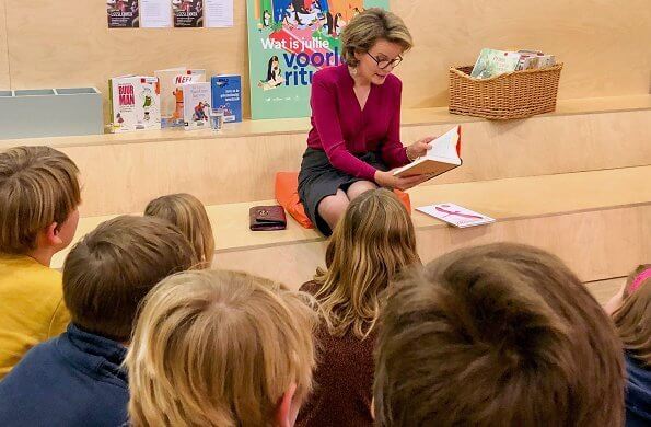 On November 14, 2019, Queen Mathilde visited the Institut du Sacré-Coeur in Barvaux (ISC Barvaux) in Durbuy and attended a class with students from the second year of secondary education to support reading aloud and encourage adults and children to read.