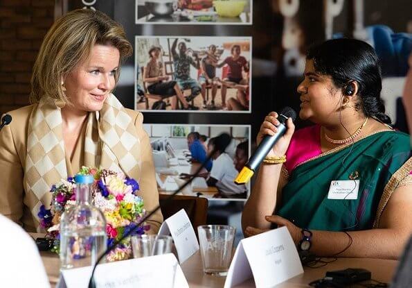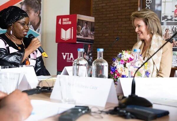 Queen Mathilde of Belgium attended the final day of the Global Education Conference organized by VIA Don Bosco at their campus in Sint-Pieters-Woluwe on the occasion of the 50th anniversary of the organization.