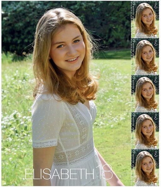An official stamp was issued on the occasion of Crown Princess Elisabeth's 18th birthday. Crown Princess Elisabeth will celebrate her 18th birthday on October 25, 2019. The photo on the stamp was taken by King Philippe in the garden of the Castle of Laeken.