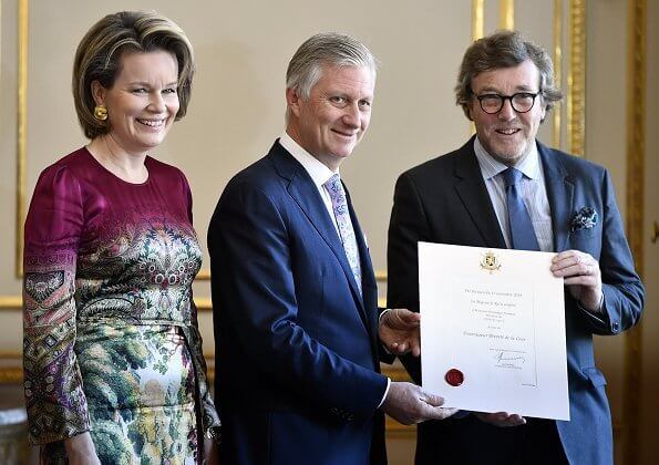 On November 20, 2019, Queen Mathilde of Belgium attended a conference held in connection with the 30th anniversary of the UN Convention of the Rights of the Child at the European Parliament in Brussels. In addition to that, in the morning, King Philippe and Queen Mathilde attended a ceremony and also a reception, both held for the 5 newly appointed Court suppliers at the Royal Palace in Brussels.
