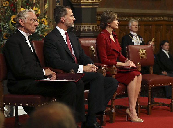 On the first day of their visit, King Felipe VI and Queen Letizia of Spain visited the Palace of Westminster on July 12, 2017 in London, England. King Felipe VI gave an speech at the British Parliament.