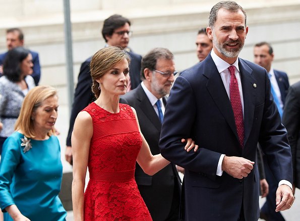 On June 28, 2017, King Felipe and Queen Letizia attended the 40th anniversary ceremony of the first democratic elections held at the Palace of the Parliament in Madrid, Spain.