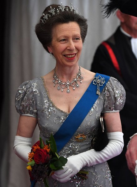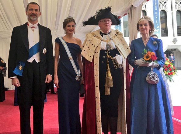 In the evening of July 13, King Philippe, Queen Letizia and Princess Anne attended the Guildhall banquet hosted by Andrew Parmley, Lord Mayor of the City of London at Guildhall (The ceremonial and administrative centre of the City of London) in London, on the second day of the Spanish King and Queen's three-day state visit.