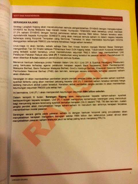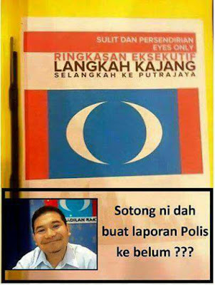 Pastinya anda masih ingat dengan LANGKAH KAJANG yang terkangkang ketika PRK Kajang tahun lepas. Begitu berbangga dengan Langkah Kajang yang diperkenalkannya tetapi kemudian segera menafikan dengan penafian PALING BANGANG dengan merujuk kepada 'FOR YOUR EYES ONLY' sebagai satu kesilapan yang menunjukkan dokumen tersebut adalah palsu, sehingga ke hari ini, Rafizi Ramli yang cukup kuat mengacum dan membuat laporan polis, tidak berani langsung meminta polis menyiasat dan mendedahkan tentang LANGKAH KAJANG yang cuba menobatkan Anwar Ibrahim yang kemudian bertukar kepada Wan Azizah sebagai Menteri Besar Selangor menggantikan Abdul Khalid Ibrahim.