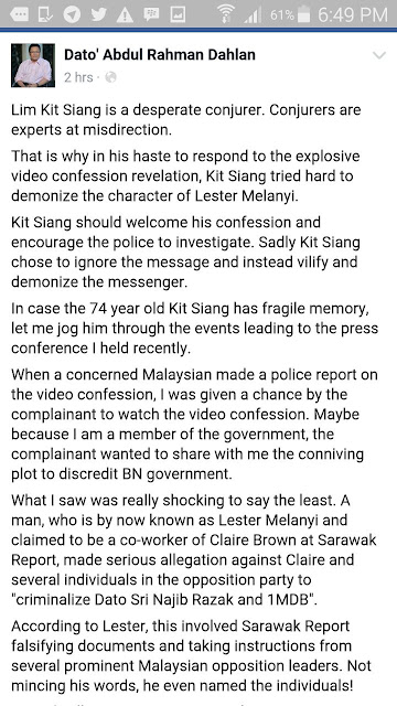 Rafizi Ramli terkelam-kabut membuat penafian yang dia mengenali Lester Melanyi, bekas kakitangan Sarawak Report dan Free Sarawak Radio. Malah dia juga menafikan pernah bertemu, berbincang mahupun memberikan arahan kepada Lester Melanyi. Pada masa yagn sama, dia juga menyerang Ramesh Rao dan melabelkan Abdul Rahman Dahlan, Ramesh Rao dan Lester Melanyi sebagai orang yang tidak boleh dipercayai.