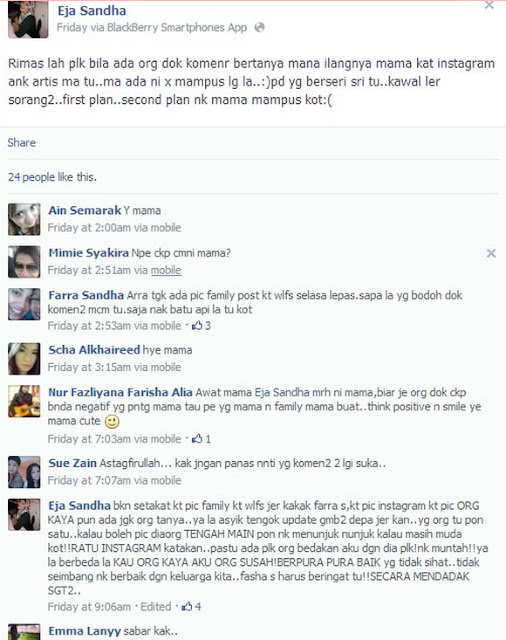 RATU INSTAGRAM katakan..pastu ada plk org bedakan aku dgn dia plk!nk muntah!!ya la berbeda la KAU ORG KAYA AKU ORG SUSAH!BERPURA PURA BAIK yg tidak sihat..tidak seimbang nk berbaik dgn keluarga kita..fasha s harus beringat tu!!SECARA MENDADAK SGT2.."