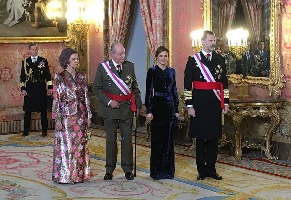 On January 6, 2018, King Felipe, Queen Letizia, King Juan Carlos and Queen Sofia of Spain attended Pascua Militar 2018 (New Year's Military Parade 2018) ceremony held at the Royal Palace in Madrid, Spain.