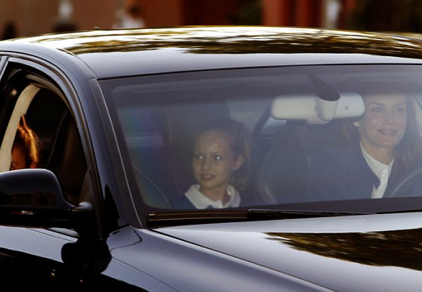 On September 11, 2017, Queen Letizia of Spain bring her daughters Princess Leonor and Infanta Sofia of Spain to Santa Maria de los Rosales school for their first day of classes in Madrid, Spain.