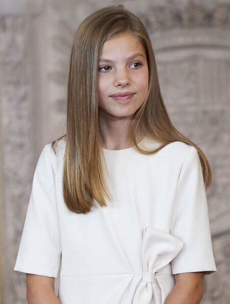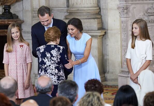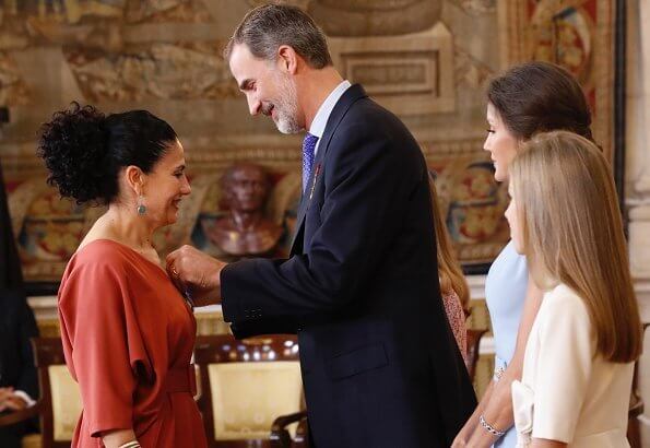 On June 19, 2019, King Felipe VI, Queen Letizia, Princess Leonor and Infanta Sofia of Spain attended the "Order of the Civil Merit" ceremony held at the Royal Palace in Madrid.
