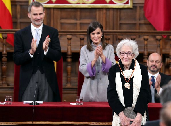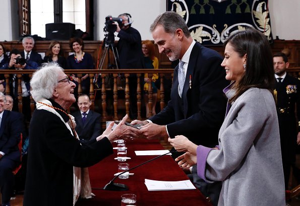 On April 23, 2019, King Felipe VI and Queen Letizia of Spain attended 2018 Miguel de Cervantes Literature Award in Spanish Language ceremony held at Auditorium of the University of Alcalá in Madrid.