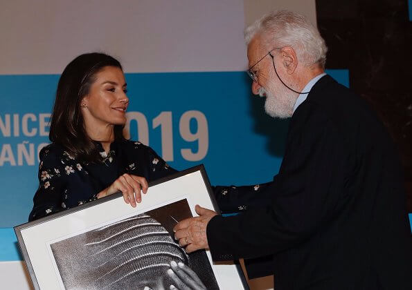 On June 11, 2019, Queen Letizia of Spain attended presentation ceremony of the 2019 UNICEF Spanish Committee Awards, held at Spanish National Research Council (CSIC) headquaters in Madrid.