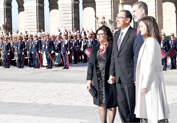 On February 27, King Felipe and Queen Letizia welcomed the President of the Republic of Peru, Martín Alberto Vizcarra Cornejo and First Lady Maribel Díaz Cabello with a ceremony at Madrid Royal Palace.