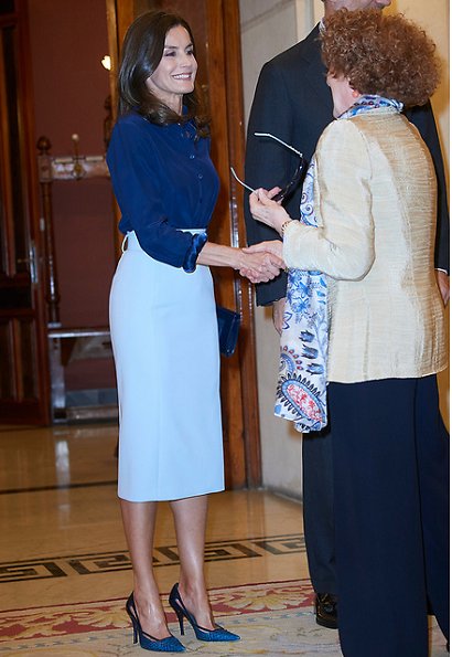 Queen Letizia had two events at Zarzuela Palace. Queen Letizia firstly received the attendees of the International Council of the Royal Theatre meeting. Then, he received the winners of the "Good Morning Javi and Mar: For a Better World" awards.