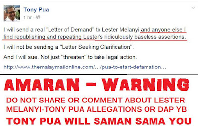 DENGAR DAN BACA BAIK-BAIK... TONY PUA AKAN SAMAN SEMUA ORANG YANG LAPORKAN TENTANG LESTER MELANYI DAN KAITAN DENGANNYA!!!