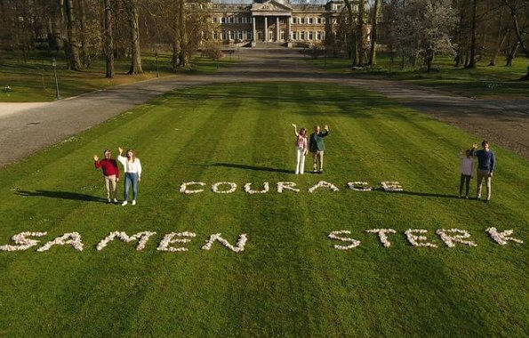 Belgian royal family shot a video in the garden of Laeken Castle by using VTM's helicopter and shared the video on their social media accounts. In the video, King Philippe, Queen Mathilde, Crown Princess Elisabeth, Prince Gabriel, Princess Eleonore and Prince Emmanuel sent the following message: We're standing strong together against corona. Thanks to health personnel and volunteers!