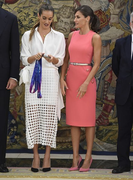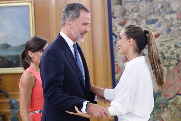 On July 23, 2019, King Felipe VI of Spain and Queen Letizia of Spain received Spanish synchronized swimmer Ona Carbonell at Zarzuela Palace in Madrid.