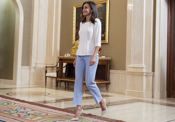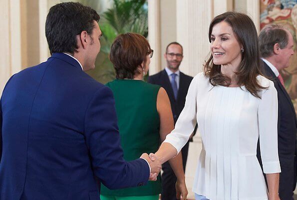 on July 16, 2019, Queen Letizia of Spain had two events at Zarzuela Palace. Queen Letizia firstly received representatives of the organizers of the International Congress of the International Association of Social Communication Studies (IAMCR / AIECS). The Queen then received organizers of the project "Santander Womennow #makeherstory 2019". Queen Letizia is the honorary president of Santander WomanNow Summit.