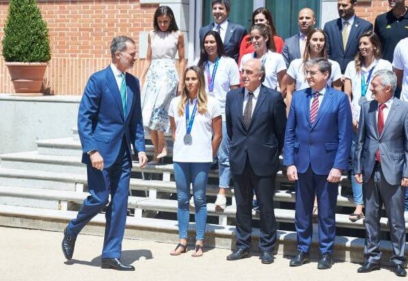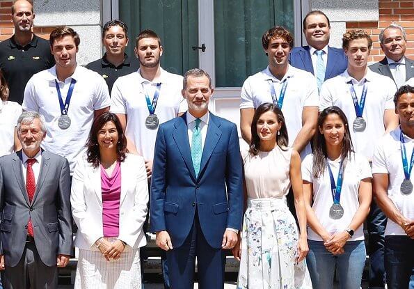 On July 30, 2019, King Felipe VI of Spain and Queen Letizia of Spain received Spanish National Men's and Women's Water Polo teams participating in the 2019 Gwangju World Aquatics Championships, at Zarzuela Palace in Madrid.