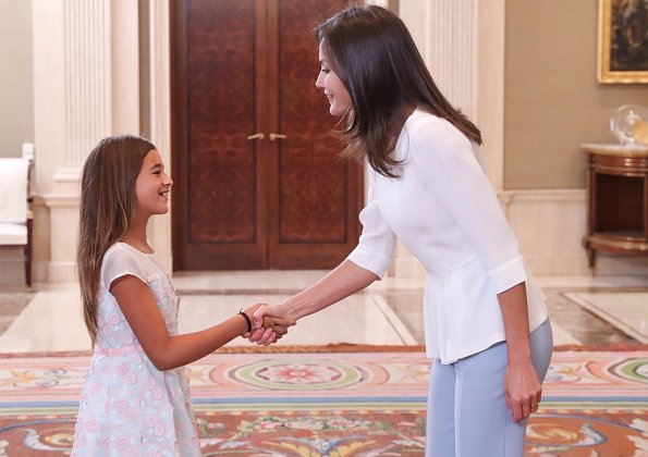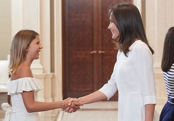 On June 27, 2019, Spanish Queen Letizia had two events at Zarzuela Palace in Madrid. Firstly, The Queen received representatives of The Spanish Association of Publishers of Periodical Publications (AEEPP) on the occasion of its 20th anniversary. The Queen then received representatives of Center for Early Childhood and Primary Education CEIP Andalusia Fuengirola (Malaga), the awardee of the Entrepreneur School Award 2018 granted by the Princess of Girona Foundation.