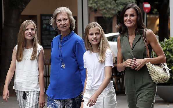 On August 01, 2019, Queen Letizia, Crown Princess Leonor, Infanta Sofia, former Queen Sofia of Spain were seen in Palma de Mallorca, Spain. They went to the Rivoli Aficine Cinema to watch the movie "The Lion King".