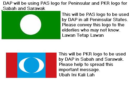 Please informed everyone you know about the changing of DAP logo to either PAS or PKR. Show them how they look like and ensure them that PAS and PKR are member parties of Pakatan Rakyat.