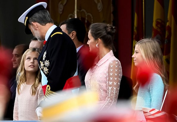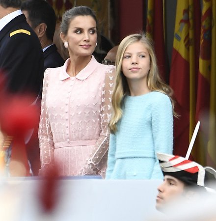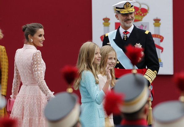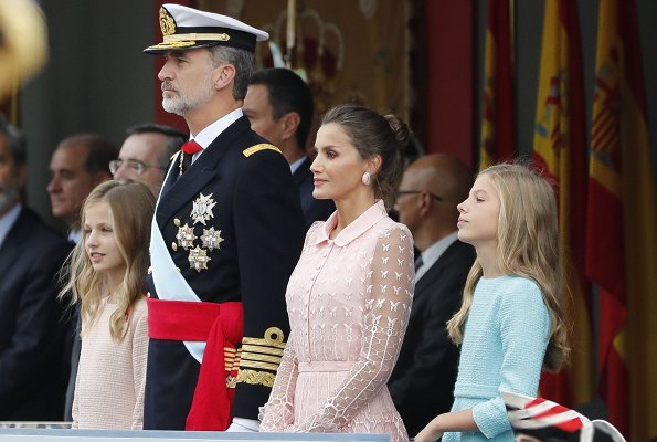 On October 12, 2019, King Felipe, Queen Letizia and their daughters Crown Princess Leonor and Infanta Sofia attended National Day 2019 celebrations in Madrid.