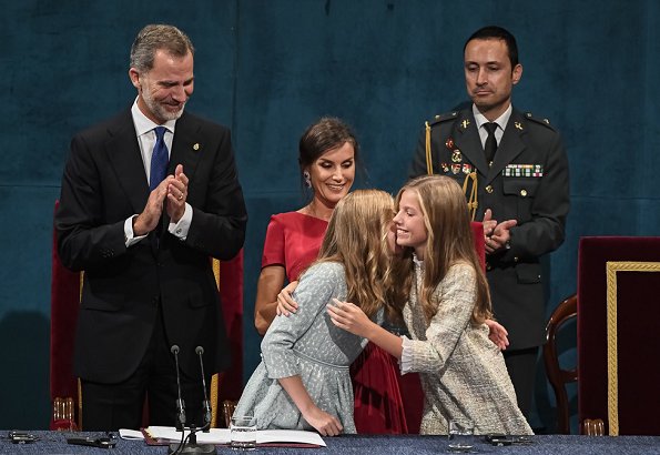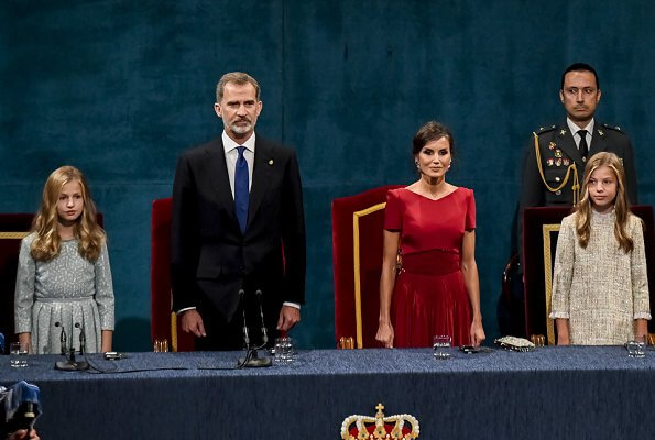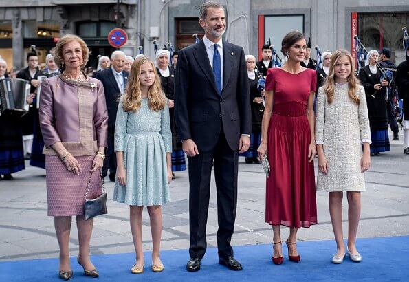 On October 18, 2019, King Felipe, Queen Letizia, former Queen Sofia, Crown Princess Leonor and Infanta Sofia attended the Princess of Asturias Awards 2019 ceremony held at the Campoamor Theater in Oviedo, Spain.