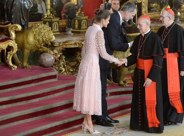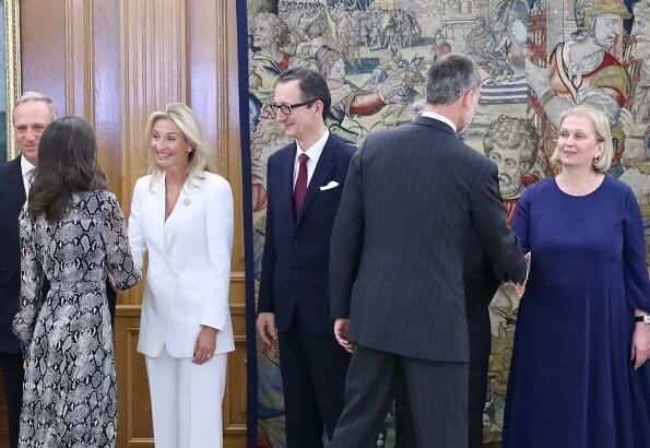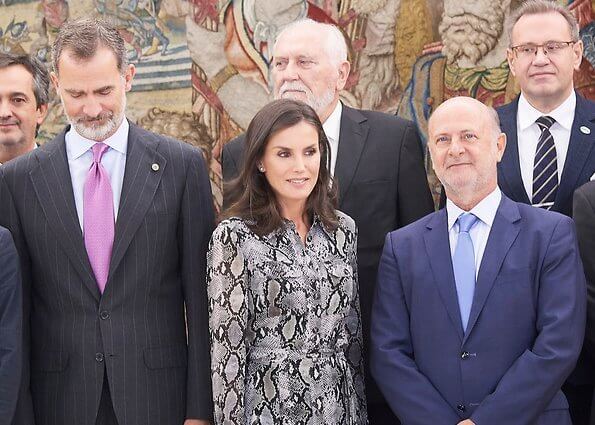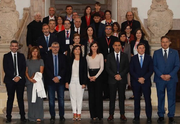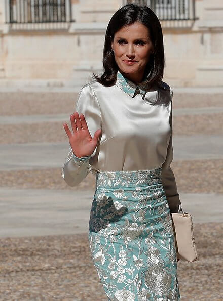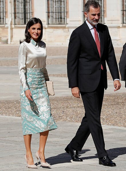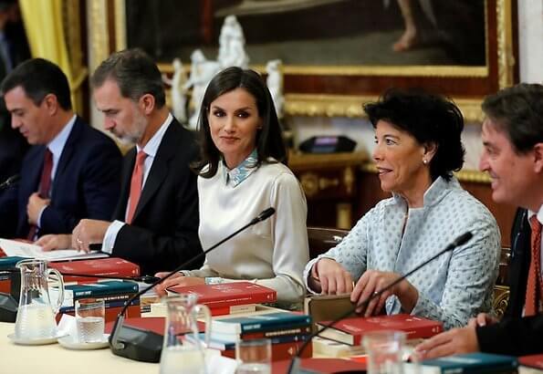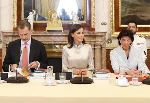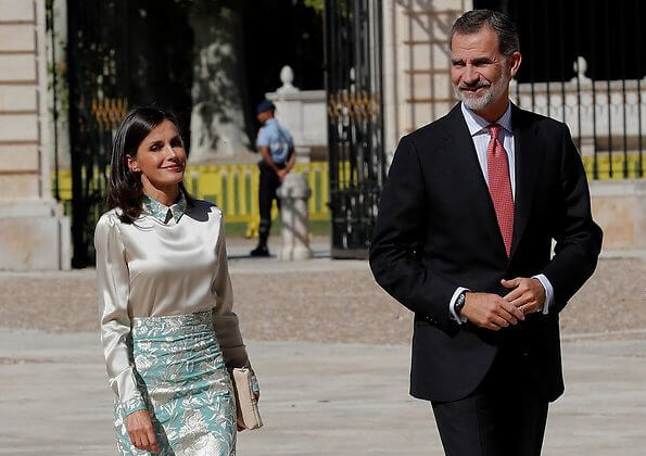 On October 2, 2019, King Felipe VI and Queen Letizia of Spain attended the annual meeting of the Board of Trustees of Cervantes Institute held at Royal Palace in Aranjuez, Madrid. After the meeting, the King and the Queen gave a lunch for the Board of Trustees of Cervantes Institute and Ibero-American ambassadors who are accredited in Spain.