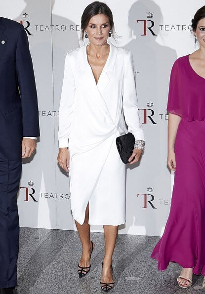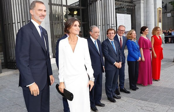 On September 18, 2019, King Felipe VI and Queen Letizia of Spain attended the opera performance "Don Carlo" by Giuseppe Verdi on the occasion of the opening of the 23rd season of the Royal Theater in Madrid.