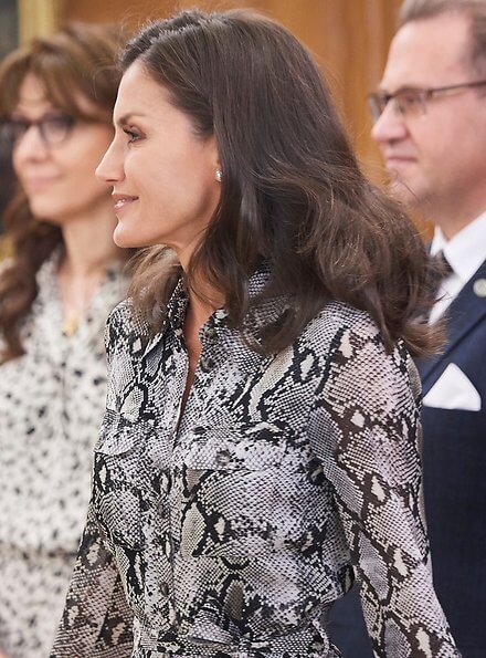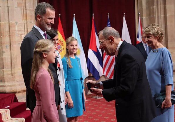 On October 18, 2019, King Felipe, Queen Letizia, Crown Princess Leonor and Infanta Sofia attended an audience with Princesa de Asturias Awards 2019 winners at the Reconquista Hotel in Oviedo.