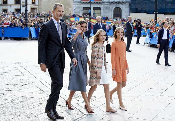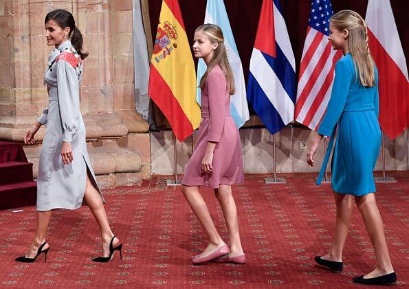 On October 17, 2019, King Felipe VI, Queen Letizia, Crown Princess Leonor and Infanta Sofía arrived in Oviedo to attend the events held on the occasion of the 2019 Princess of Asturias Awards Ceremony.
