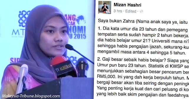 Ekoran Video anak muda bernama Zahra yang tersebar meluas menceritakan mengenai luahan generasi masa kini yang bergelut dengan kehidupan di Malaysia, ramai yang menyokong dan tidak kurang juga yang mempertikaikan. Tulisan dibawah dikongsikan oleh Mizan Hashri. Baca lagi pendapat beliau: