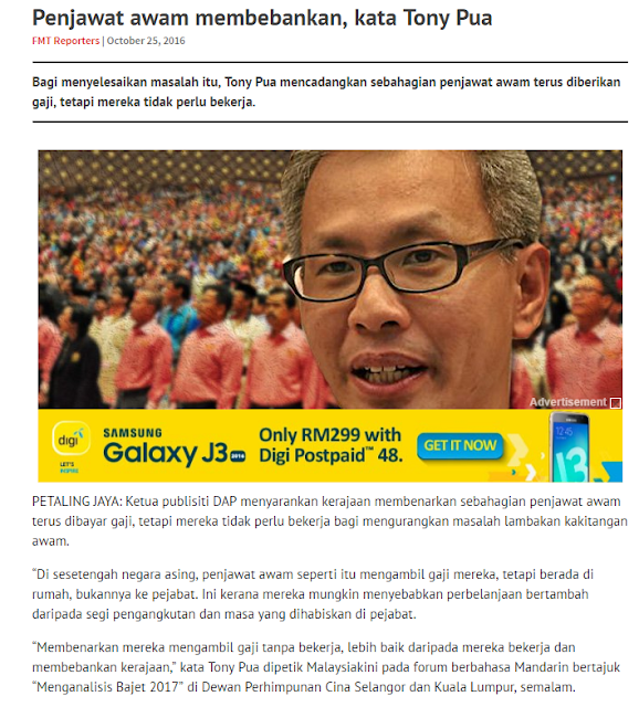 tony pua paling vokal nak kurangkan jumlah penjawat awam Msia yg dia kata paling ramai di dunia.. ...